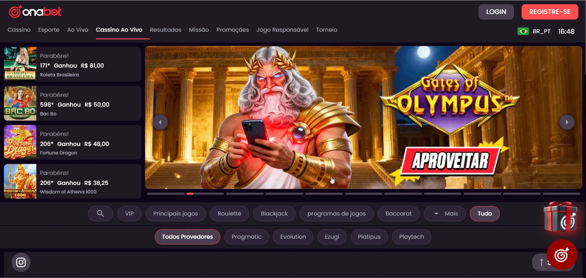 Nossa equipe testou o onabet cassino com foco técnico: variedade real, estabilidade e qualidade dos provedores. A plataforma opera com um portfólio multimarcas sólido, incluindo PG Soft, Pragmatic Play, Spribe, NetEnt, Red Tiger, Evoplay, Galaxsys, Caleta e Big Time Gaming.